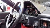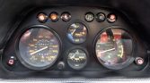 A leather-wrapped steering wheel frames Veglia instrumentation consisting of a 180-mph speedometer, a tachometer, and auxiliary gauges for oil pressure and coolant temperature. A clock and additional readouts for fuel level and oil temperature are housed in the center stack, and the five-digit odometer shows 25k miles.