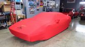 Pininfarina-designed bodywork is finished in Nero and features a black removable roof panel along with a roof spoiler, Scuderia Ferrari shields on the front fenders, fog lights, pop-up headlights, and quad exhaust outlets.
