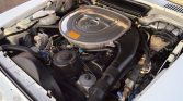 The car is finished in Arctic White (147) and features a body-color removable hardtop, a black soft top, American-market lighting and bumpers, and a power antenna. The seller states that paint meter readings suggest the top of the front fenders may have been refinished, as may the trunk, and there is a scratch in the passenger-side rear quarter.