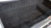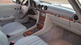 The cabin is upholstered in gray leather with matching carpets and burl wood trim on the dash and console. Equipment includes a Becker Grand Prix AM/FM/cassette stereo, an alarm system, automatic climate control, cruise control, and power windows, mirrors, and locks.