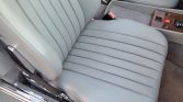Silver-finished 15″ Gullideckel wheels are mounted with Michelin Defender tires that measure 205/65 and show 2021 date codes. The car is equipped with an independent suspension and four-wheel anti-lock disc brakes. The brake pads were replaced, the rotors were turned, and a brake fluid flush was performed in February 2020. The seller states that recent service involved resealing the power steering gearbox along with replacement of the drag links, steering shock absorber, subframe mounts, and two tie rod ends.