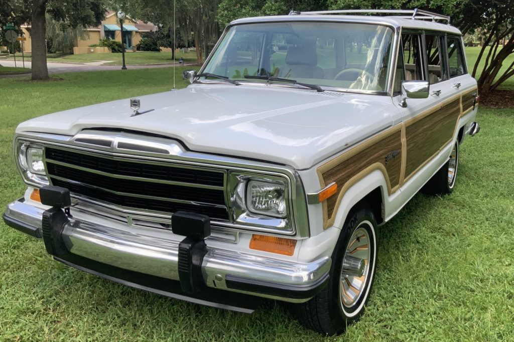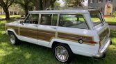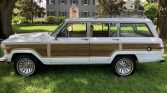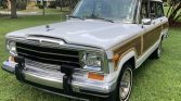 This 1990 Jeep Grand Wagoneer is finished in white over Sand leather upholstery and is powered by a refurbished 5.9-liter V8 paired with a three-speed automatic transmission and a Selec-Trac four-wheel drive system. Additional equipment includes refinished 15″ alloy wheels, four-wheel disc brakes, woodgrain appliqués, a chrome roof rack, a receiver hitch, power-adjustable front seats, air conditioning, and a Pioneer CD stereo with Bluetooth capability. The truck spent time in California and Wisconsin before it was acquired…
