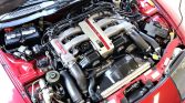 This 1991 Nissan 300ZX is finished in Cherry Red Pearl over a Charcoal leather and cloth interior, and it is powered by a twin-turbocharged 3.0-liter V6 paired with a five-speed manual transmission and a limited-slip differential. Additional equipment includes removable glass T-top roof panels, a power-adjustable driver’s seat, automatic climate control, cruise control, a Panasonic head unit, a Bazooka subwoofer, HICAS four-wheel steering, driver-adjustable shock absorbers, and chrome-finished 16″ alloy wheels. The car was first registered in…