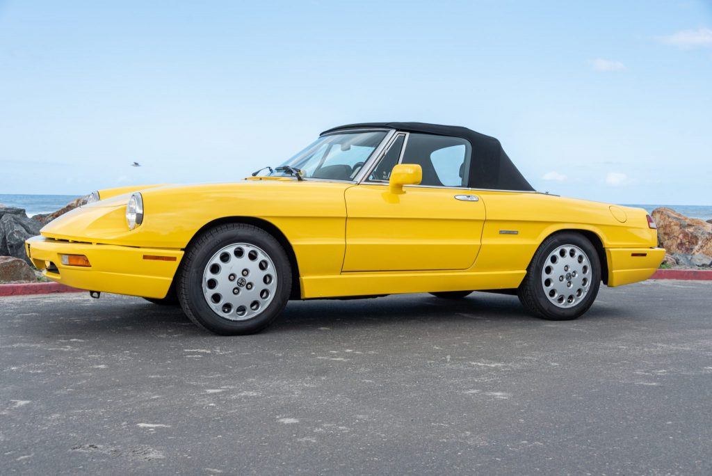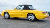 This 1992 Alfa Romeo Spider Veloce was first delivered to Don Jordan Chrysler-Plymouth of Beachwood, Ohio, and was acquired by the seller in July 2020. The car is finished in yellow with a black convertible top, and power is from a 2.0-liter inline-four paired with a three-speed automatic transmission. Equipment includes 15″ alloy wheels, black leather and suede upholstery, air conditioning, power windows, and an AM/FM CD stereo. Refurbishment work in 2019 and 2020 has included repairing…
