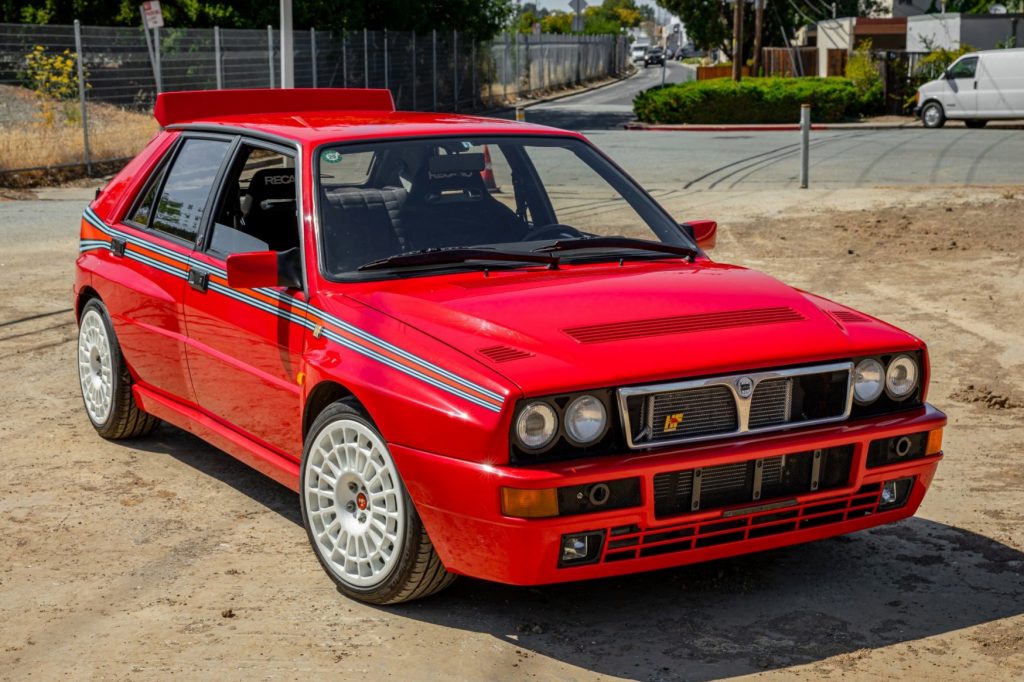 This 1992 Lancia Delta Integrale Evoluzione was acquired in Japan by the owner in 2018 and subsequently imported to the US. The car is finished in Rosso Monza with Martini Racing-inspired stripes over a gray fabric interior and is powered by a rebuilt turbocharged 2.0-liter inline-four that drives all four wheels through a five-speed manual transmission. Features include Evo-specific bodywork, air conditioning, a Continental CD stereo, an upgraded turbo and camshafts, Bilstein shock absorbers, Recaro SR-2 seats,…
