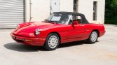 This 1993 Alfa Romeo Spider Veloce is finished in red over tan and is powered by a 2.0-liter inline-four paired with a five-speed manual transmission. Equipment includes a black soft top, air conditioning, 15″ alloy wheels, four-wheel disc brakes, power windows, and an Alpine cassette stereo. The car spent time in Michigan and Florida before the seller acquired it in Georgia in February 2021. Subsequent work reportedly included refreshing the interior and replacing the tires, fluids, front…