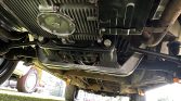 Aftermarket 17” wheels are mounted with 205/50 Continental ContPremiumContact 2 tires. The bus has been converted to rack-and-pinion power steering, and stopping power is provided by front disc and rear drum brakes.