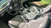 The cockpit features seats upholstered in gray leather with matching trim and black carpets. Features include air conditioning, an aftermarket Alpine CD stereo, and an MGW Viper shift knob. The factory shift knob is included in the sale.
