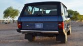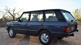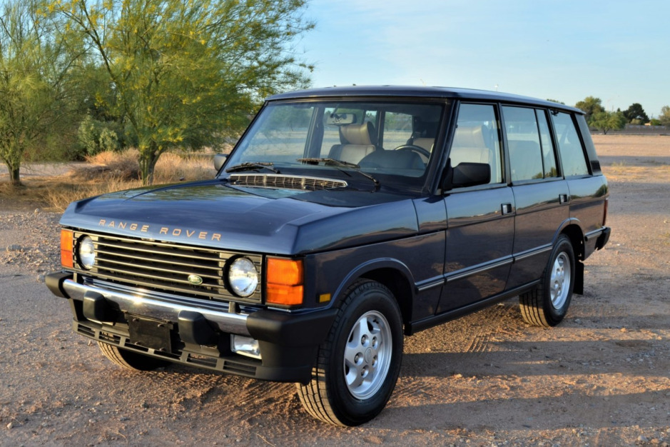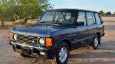 This Land Rover Range Rover Classic County is a long-wheelbase example that was first registered in Canada and subsequently imported to Arizona in 2017 after being acquired by the seller. The truck is finished in Plymouth Blue Metallic over Sorrel Tan Connolly leather, and power is provided by a 4.2-liter V8 mated to a four-speed automatic transmission and a dual-range transfer case. Additional equipment includes mud flaps, 16″ alloy wheels, a receiver hitch, a heated windshield, a…