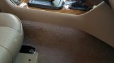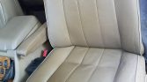 The cabin is trimmed in tan leather with matching carpets along with wood veneer accents on the dash, center console, gear selectors, and door panels. Amenities include dual-zone climate control, a dash-mounted analog clock, power-adjustable and heated front seats with fold-down armrests, and a 60/40-split folding rear bench. The wood veneer center console accents were reportedly refinished during current ownership.