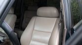 The cabin features three rows of seats trimmed in Oak leather along with matching door panel inserts with wood accents. The front seats were reportedly reupholstered, while the rear seats were cleaned and re-dyed. Amenities include air conditioning, power windows and locks, cruise control, and a factory CD/cassette stereo. The heater core was replaced in January 2022.