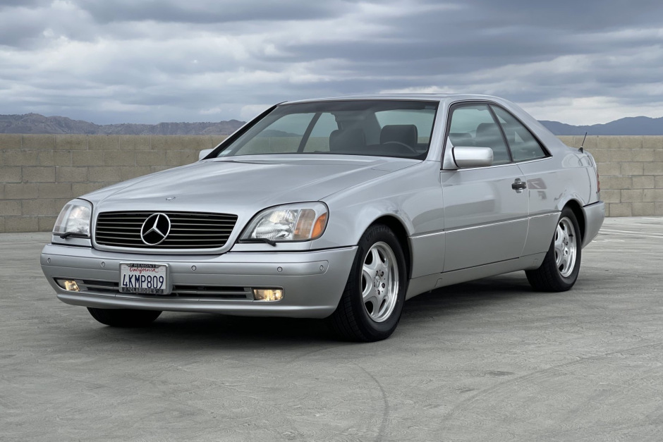 This 1997 Mercedes-Benz S500 coupe was registered in California from new and acquired by selling dealer in January 2021. The car is finished in silver over black leather and powered by a 5.0-Liter V8 paired with a five-speed automatic transmission. Equipment includes self-leveling suspension, an electric sunroof, parking sensors, heated and power-adjustable front seats, dual-zone automatic climate control, and a factory cassette stereo. This S500 coupe has 58k miles and is offered with a Carfax report and a clean California title.