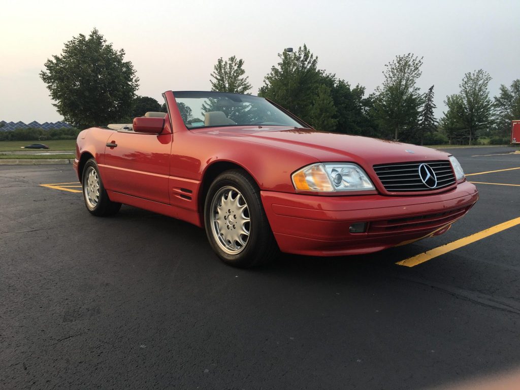 This 1998 Mercedes-Benz SL500 is finished in Imperial Red over beige leather and is powered by a 5.0-liter V8 paired with a five-speed automatic transmission. Equipment includes a power-operated black soft top, a removable hardtop with a glass roof, 16″ alloy wheels, heated and power-adjustable seats, automatic climate control, cruise control, an auto-dimming rear-view mirror, an alarm system, a digital cassette stereo, and a trunk-mounted CD changer. The car was first registered in Florida, and was acquired by the seller in 2001 before ownership was transferred to the seller in 2016. Recent service is said to include replacing the spark plugs.