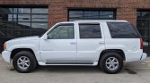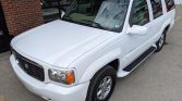This 2000 Cadillac Escalade is finished in Aspen White over Neutral leather and is powered by a 5.7-liter V8 paired with a four-speed automatic transmission and a dual-range transfer case. Equipment includes heated seats, front and rear climate control, a Delco-Bose audio system, a video cassette player paired with a fold-down screen, headphone jacks, power aLessories, 16″ alloy wheels, tinted rear windows, fog lights, and roof rails. Recent service included rebuilding the alternator, recharging the air-conditioning system,…