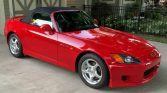 This 2000 Honda S2000 was purchased new by the seller from O’Neill Honda of Overland Park, Kansas, and is finished in red over black leather. The car is powered by a 2.0-liter VTEC inline-four paired with a six-speed manual transmission and a limited-slip differential. Additional equipment includes a power-operated black soft top, air conditioning, cruise control, an AM/FM/CD stereo, a Mugen cat-back exhaust system, front and rear spoilers, and 16″ five-spoke wheels.