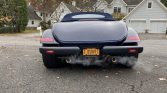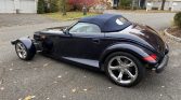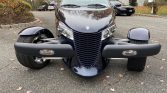 Chrome-finished wheels measure 17″ diameter at the front and 20″ at the rear, and they are mounted with Goodyear Eagle GS-D tires measuring 225/45 and 295/40, respectively. Independent rear suspension and four-wheel disc brakes were standard equipment on all Prowlers.
