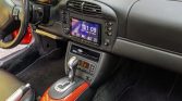 This 2001 Porsche 911 Turbo coupe is finished in Zanzibar Red over black full leather and was initially collected via tourist delivery. Equipment includes a speed-activated rear spoiler, a sunroof, xenon headlights, chrome-finished 18″ Turbo Twist wheels, Digital Sound Processing, and a Kenwood touchscreen head unit with smartphone connectivity. Power is provided by a twin-turbocharged 3.6-liter Mezger flat-six linked with a five-speed Tiptronic automatic transaxle.