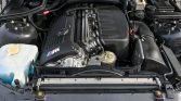The 3.2-liter S54 inline-six produced 315 horsepower with 251 lb-ft of torque when new, and power is sent to the rear wheels through a five-speed manual transmission and a limited-slip differential. The cooling system was serviced in August 2019, along with an oil change and replacement of the drive belts, thermostat, oil filter housing gasket, and timing chain tensioner seal in August 2019. A replacement battery was fitted in October 2019.