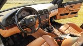 This 2002 BMW M5 is finished in Sterling Gray Metallic over Caramel Nappa Heritage leather upholstery and is powered by a 4.9-liter DOHC V8 paired with a six-speed manual transmission and a limited-slip differential. Equipment includes xenon headlights, 18″ Style 65 wheels, heated and power-adjustable front seats, a moonroof, automatic climate control, and Park Distance Control, while modifications include a Slimmbones rear diffuser, a built-in K40 radar detector, and engine management software from Evolve Tuning.