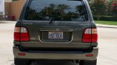 This 2002 Lexus LX470 was initially delivered to Lexus of Memphis, Tennessee, and spent time in Raleigh, North Carolina, before being acquired by the seller in May 2021. The truck is finished in Riverock Green Mica over ivory leather and is powered by a 4.7-liter 2UZ-FE V8 paired with a four-speed automatic transmission, a dual-range transfer case, and a locking center differential. Additional features include Adaptive Variable Suspension, Adjustable Height Control, fog lights, third-row seating, and power-adjustable and heated front seats.