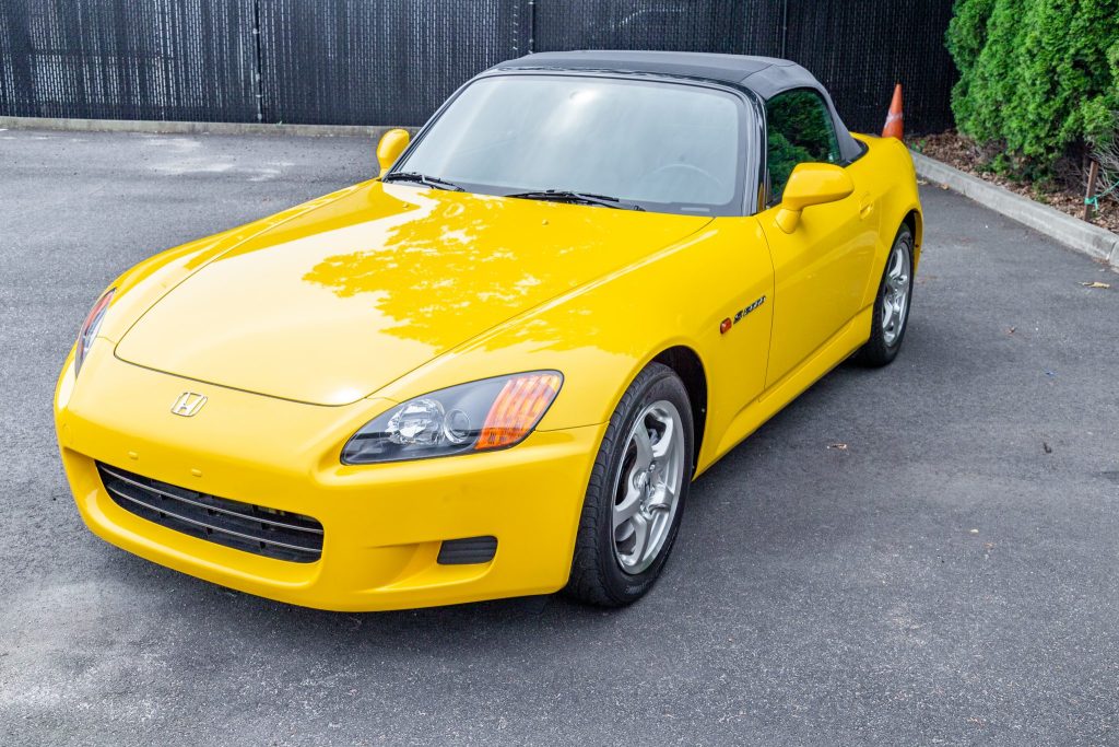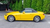 This 2003 Honda S2000 is finished in Spa Yellow Pearl over black leather and is powered by a 2.0-liter DOHC inline-four mated to a six-speed manual transmission and a limited-slip differential. Features include a power-retractable black convertible top, cruise control, air conditioning, a factory CD stereo, and xenon headlights.