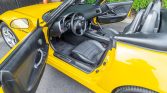 The car is finished in Spa Yellow Pearl and features a power-operated black soft top with a glass rear window. Additional details include xenon headlights,…