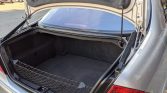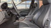 The cabin features seats upholstered in black Nappa leather with a matching dashboard, door panels, carpets, and floor mats along with burred walnut root aLents. The front seats are heated and power-adjustable with position memory, and other equipment includes dual-zone automatic climate control, cruise control, an electric rear-window roller blind, an alarm system, COMAND infotainment with navigation, and a CD changer. Signs of wear can be seen on the headlight-control surround and the steering-wheel buttons.