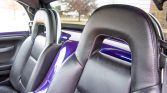 The twin heated power-adjustable high-back bucket seats are upholstered in Ebony leather and are joined by body-color wraparound trim and satin chrome accents on the dash, center console, and door panels. Amenities include a color-keyed waterfall console, a Bose sound system, a six-disc CD stereo, air conditioning, and cruise control.