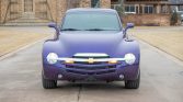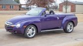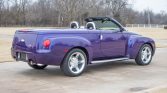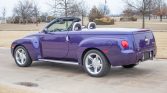 The SSR was built on a modified version of the GMT360 platform shared with the contemporary TrailBlazer SUV, and its styling was inspired by the Chevrolet Advance Design family of trucks. This example is finished in Ultra Violet Metallic with a color-matched hardshell tonneau cover and a power-retractable hardtop. Additional features include flush-mounted halogen headlights bisected by a satin-finished chevron bar, flush-mounted tail lights, power-operated heated side mirrors, running boards, and dual polished exhaust tips.