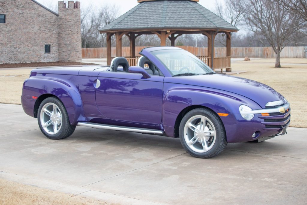 This 2004 Chevrolet SSR was delivered to Edwards Chevrolet in Birmingham, Alabama, where it spent the majority of its time off of the road, accumulating just 739 miles. The truck was specified in Ultra Violet Metallic over Ebony leather and is powered by a 5.3-liter V8 linked to a four-speed automatic transmission and a limited-slip differential. It was optioned with the Preferred Equipment Group, and additional features include a power-folding hardtop, running boards, 19″ and 20″ cast-aluminum wheels, a sport suspension, heated power-adjustable twin bucket seats, a Bose sound system, a six-disc CD stereo, remote keyless entry, cruise control, and air conditioning.