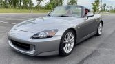 This 2004 Honda S2000 is finished in Silverstone Metallic over a red and black leather interior and powered by a 2.2-liter F22C VTEC inline-four paired with a six-speed manual transmission and a limited-slip differential. Modifications include a carbon-fiber air intake, titanium headers, coilovers, clear side markers, and an aftermarket stereo system. The car was delivered new to Martin Main Line Honda of Ardmore, Pennsylvania, and spent time in Texas and Florida before relocating to Tennessee, where it…