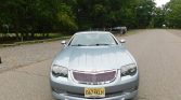 The car is finished in Sapphire Silver Blue Metallic and features a model-specific fixed rear spoiler as well as a body-color front lip. Other features include fog lights, satin-chrome door handles, an aftermarket chrome grille, and central dual exhaust outlets.