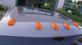 The Quad Cab interior features two rows of bench seats upholstered in Dark Slate Gray cloth, and interior appointments include a power-adjustable driver’s seat, an Infinity sound system, air conditioning, and a JVC head unit. Blue interior lights, WeatherTech floor liners, a back-up camera, a Hayes trailer brake controller, an aftermarket horn, and a GT Bully Dog fuel tuner have also been installed.