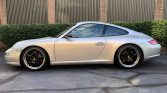 19″ Carrera S “Lobster Fork” wheels feature black centers and are wrapped in Michelin Pilot Super Sport tires. The suspension is fitted with Bilstein PSS9 coilovers and GT3 sway bars. Braking is provided by Porsche-branded calipers and cross-drilled rotors at all four corners.
