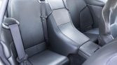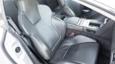 The cabin features seating surfaces upholstered in black leather along with a leather-covered dashboard and burred wood trim on the door panels and center stack. Amenities include navigation, power-adjustable front seats, automatic climate control, alloy pedals, keyless entry, a CD stereo, and cruise control.