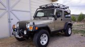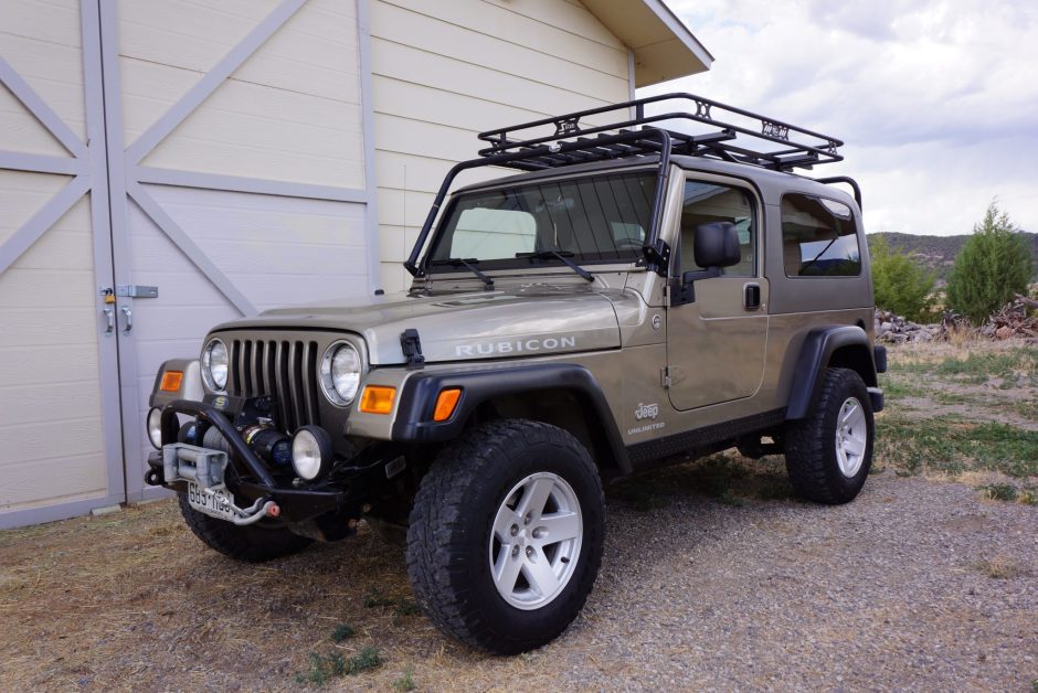This 2006 Jeep Wrangler Unlimited Rubicon was first delivered to Lithia Colorado Springs Jeep-Chrysler in Colorado and is finished in Light Khaki Metallic over a Khaki cloth interior. Power is provided by a 4.0-liter inline-six paired with a six-speed manual transmission, a dual-range transfer case, and Tru-Lok locking front and rear differentials. Additional equipment includes a removable hardtop, air conditioning, cruise control, an AM/FM/CD stereo, front and rear Dana 44 axles, driving lamps, and 16″ wheels. Modifications…