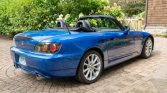 This 2007 Honda S2000 is finished in Laguna Blue Pearl over black leather, the car is powered by a 2.2-liter VTEC inline-four linked with a six-speed manual transmission and a limited-slip differential. Equipment includes 17″ ten-spoke wheels, a black convertible soft top, xenon headlights, air conditioning, a CD stereo, and cruise control.