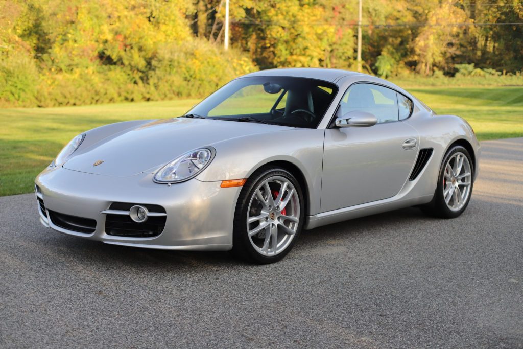 This 2007 Porsche Cayman S is finished in silver over black leather and is power by a 3.4-liter flat-six paired with a six-speed manual transaxle. Equipment includes the Preferred and Bose High End Sound Packages, 19″ wheels, bi-xenon headlamps, heated seats, automatic climate control, and a Pioneer stereo.