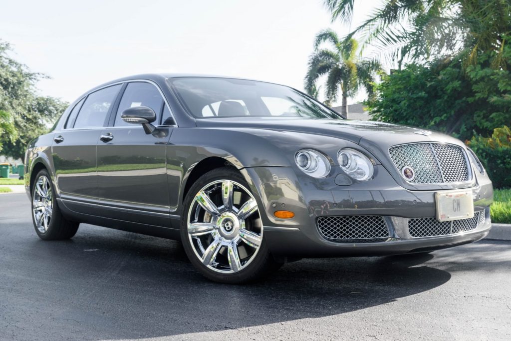 This 2008 Bentley Continental Flying Spur was first registered in Florida and spent time in Ohio before being acquired by the seller in 2013 for their personal collection. The car is finished in Cypress over Porpoise leather and powered by a twin-turbocharged 6.0-liter W12 that drives all four wheels through a six-speed automatic transmission. Additional equipment includes air suspension, 20″ wheels, parking sensors, a rearview camera, climatized and massaging seats, quad-zone automatic climate control, and navigation.