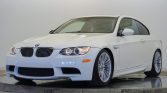 This 2008 BMW M3 is a white-over-black coupe that is powered by a 4.0-liter S65 V8 paired with a six-speed manual transmission and a limited-slip differential. Equipment includes power-adjustable and heated front seats, a glass sunroof, iDrive infotainment with navigation, Park Distance Control, adaptive xenon headlights with washers, Comfort Access, an aftermarket exhaust system, and lowered suspension with Electronic Damper Control.