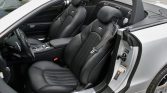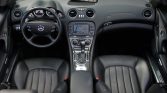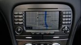 The cabin is upholstered in black Nappa leather with high-gloss carbon fiber aLents on the dashboard, center console, and door panels. AMG-branded stainless steel covers are affixed to the door sills. Amenities include the Premium 1 Package, which added heated and ventilated multi-contour seats with position memory and Keyless Go as well as a COMAND Navigation system with Surround Sound, an in-dash CD player, and a 6 disc changer.