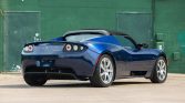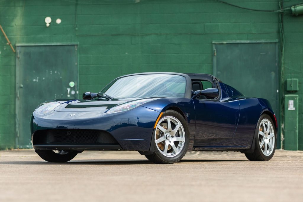 This 2010 Tesla Roadster Sport is finished in Twilight Blue Metallic over tan and black leather upholstery and retains a 375-volt electric motor paired with a 53-kWh lithium-ion battery pack and a direct-drive single-speed transmission. Equipment includes hard and soft tops, staggered-diameter wheels, air conditioning, heated seats, power windows, a JVC infotainment screen with navigation, and a seven-speaker sound system. The car has not been driven since 2017, and the battery pack is said to require replacement.