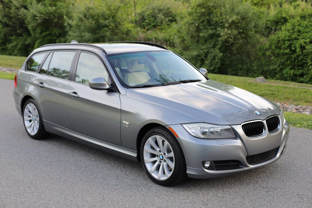 This 2011 BMW 328i xDrive Sports Wagon was delivered new to I. G. Burton BMW of Milford, Delaware, and has 36k miles. It is finished in Space Gray Metallic over Oyster leather and powered by a 3.0-liter inline-six driving all four wheels through a six-speed automatic transmission. Equipment includes the Premium Package, Park Distance Control, a panoramic sunroof, heated and power-adjustable front seats, dual-zone automatic climate control, a heated steering wheel, and navigation.