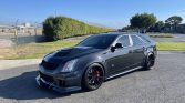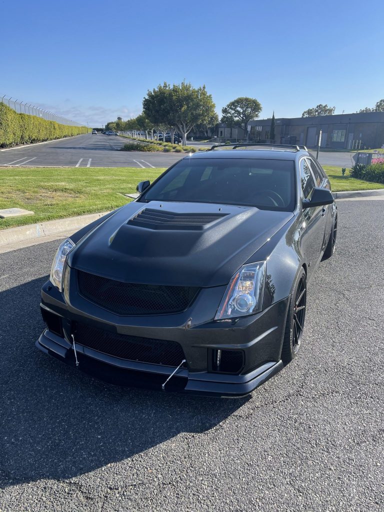 This 2013 Cadillac CTS-V wagon is finished in Black Diamond Tricoat over black leather and is powered by a supercharged 6.2-liter V8 paired with a six-speed automatic transmission. Engine modifications include an Airaid intake system, a Brian Tooley Racing (BTR) valvetrain, American Racing headers, a ported throttle body, aftermarket fuel delivery components, and more as detailed below. Equipment includes a carbon-fiber hood, a glass moonroof, roof rails, Recaro heated and ventilated front seats, a custom audio system, and an Android-based touch-screen…