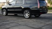 This 2015 Cadillac Escalade ESV Premium has 70k miles on board. It is powered by a 6.2-liter V8 linked with an eight-speed automatic transmission, a four-wheel-drive system, and a locking rear differential. The truck is finished in Black Raven over Shale Brown Mulan leather and features 22″ seven-spoke alloy wheels, Magnetic Ride Control, a sunroof, LED lighting, parking sensors, power-retractable running boards, heated and cooled power-adjustable front seats, heated second-row seating, a Bose sound system, a head-up display,…