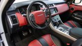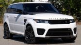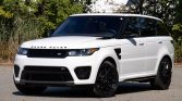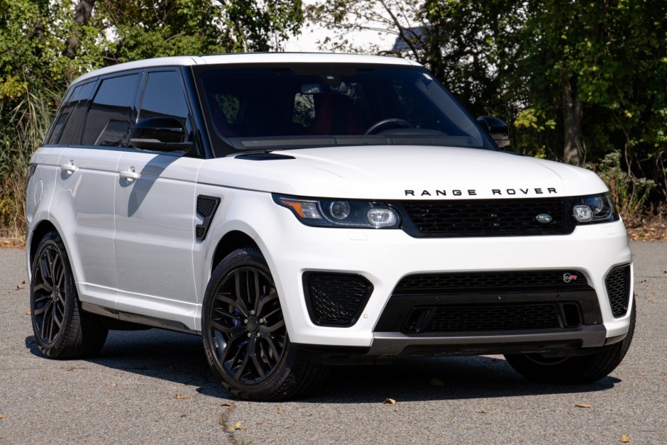 This 2016 Land Rover Range Rover Sport SVR is powered by a supercharged 5.0-liter V8 that drives all four wheels through an eight-speed automatic transmission and a dual-range transfer case. The truck has 17k miles and is finished in Fuji White over Ebony and Pimento leather upholstery. Equipment includes a panoramic sunroof, xenon headlights, parking sensors, 21″ Style 517 wheels, heated and ventilated power-adjustable front seats, heated rear seats, a Meridian sound system, adaptive cruise control, and navigation.