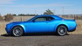 Silver 20″ Devil’s Rim forged alloy wheels wear 305/35 Pirelli tires at each corner. The Scat Pack Widebody package included a Widebody Competition suspension with adaptive shocks and four-wheel disc brakes with Brembo six-piston front calipers.