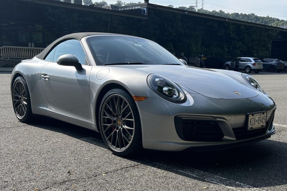 This 2019 Porsche 911 Carrera S cabriolet is a GT Silver Metallic-finished example that has 9k miles and was optioned from the factory with the Premium Package Plus, which added the Light Design Package, heated and ventilated seats, automatically dimming mirrors, LED headlights with PDLS+, and Porsche Entry & Drive. Powered by a twin-turbocharged 3.0L flat-six paired with a seven-speed PDK automatic transaxle, the car is further equipped with Graphite Blue leather upholstery, 20″ RS Spyder Design alloy…