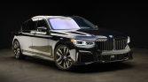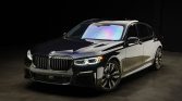 This 2022 BMW M760i xDrive is powered by a twin-turbocharged 6.6-liter V12 that drives all four wheels through an eight-speed automatic transmission and an xDrive all-wheel-drive system. The car is finished in Carbon Black Metallic over black Nappa leather upholstery, and equipment includes the Driving Assistance Professional and Luxury Rear Seating packages as well as adaptive LED headlights, a panoramic SKY Lounge LED roof, Park Distance Control, 20″ Style 760M wheels, a Harman Kardon sound system, four-zone automatic…