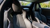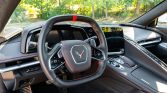 The cockpit features heated and ventilated power-adjustable GT2 bucket seats upholstered in Jet Black leather with Corvette logos on the headrests and Adrenaline Red stitching that extends to the dashboard, center console, and door panels. Amenities include a head-up display, rear cross-traffic alert, blind-spot monitoring, an 8″ touchscreen infotainment system with navigation as well as Keyless Entry, a 14-speaker Bose sound system, dual-zone automatic climate control, and cruise control.